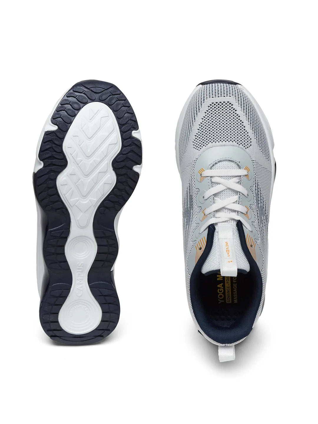 Meet the Campus SPADE Men’s Running Shoes in White and Navy — the pair that makes every stride feel A1. With a sleek vamp upper, these shoes keep things breathable while looking razor-sharp. The sole combines EVA, TPR, and TPU to deliver bounce, grip, and stability in every stride. Add the Bubble Yoga Max insole, and your feet basically get their own personal cushion-cloud. The Support-Tech has your back (and your heel), so you can stay ahead of the game without effort. And the colorway? Crisp white with sporty navy accents — clean, confident, and ready to keep up with your pace, whether it’s on the track, in the gym, or just chasing daily goals.