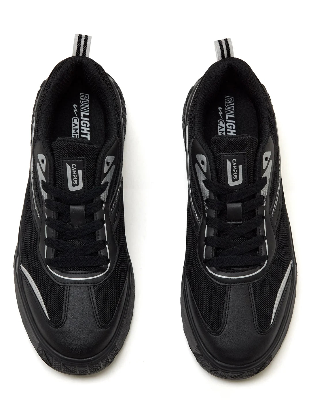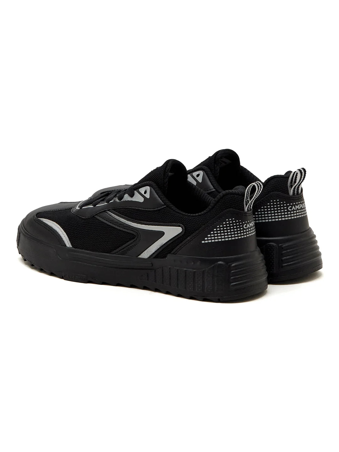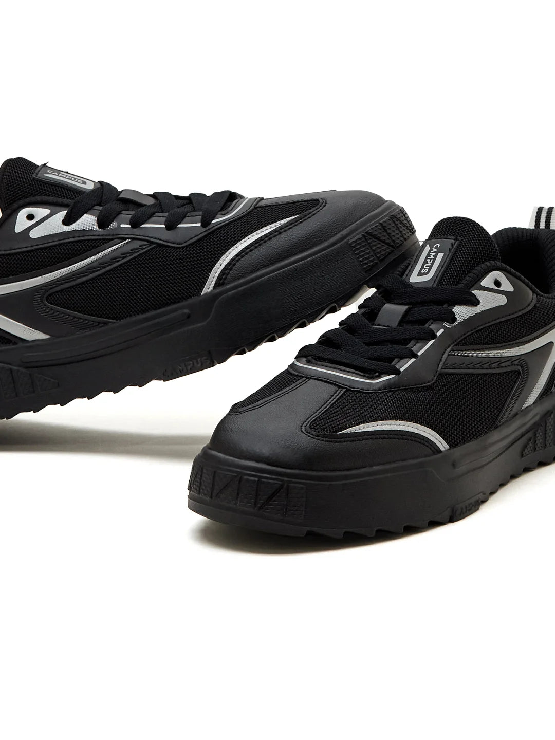 Dark, gritty, and undeniably cool — the Campus STATIC Men’s Sneakers are all about attitude. The breathable mesh and PVC upper keeps things functional while leaning into a bold, urban look. The grungy EVA sole delivers lightweight flexibility, and the PU Foam insole with Pillofoam cushioning ensures comfort that lasts from day plans to late nights. Finished in sleek black base with metallic silver highlights, this pair is made to stand out — best styled with all-black fits, ripped denims, or statement jackets.