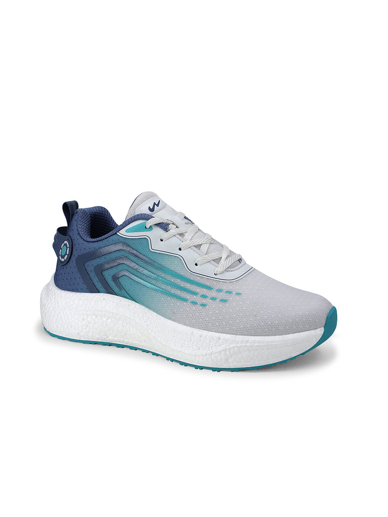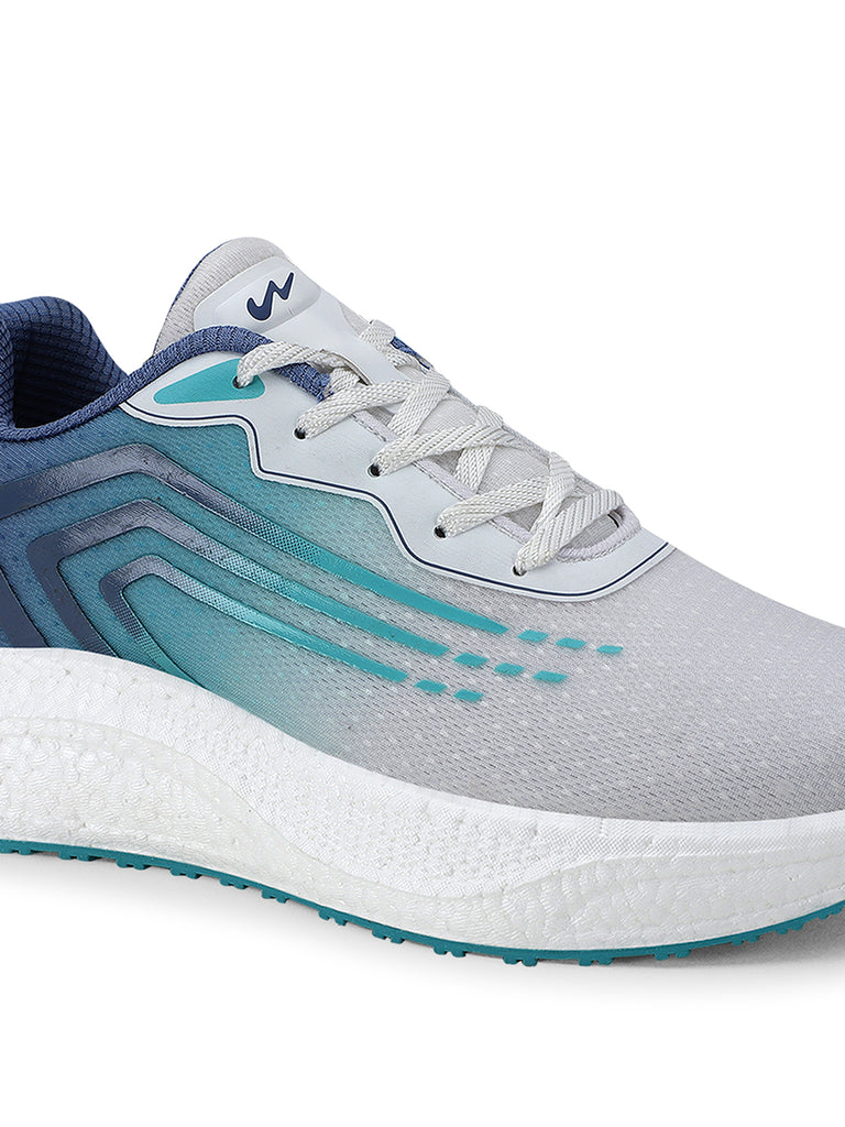 Introducing STRIDER men's shoes from Campus - a pair that redefines every stride as a statement of confidence. Always feel at ease with a comfortable mesh upper that allows your feet to breathe freely. Each step feels like a gentle embrace with the super-soft insole, turning every walk into a stroll on clouds. Walk with swagger, knowing that comfort is your constant companion. For the urban explorer in you, the lace-up design of these men's shoes ensures a secure and snug fit. Experience the Nitroboost Outsole that provides shock absorption on impact with every step you take. STRIDER isn't just confined to one role; it's your versatile companion for every occasion. Whether you're crushing it at the gym, stepping out for casual outings, or making a statement at a social event, these light grey, royal slate blue, and ice blue shoes effortlessly blend style, comfort, and functionality.