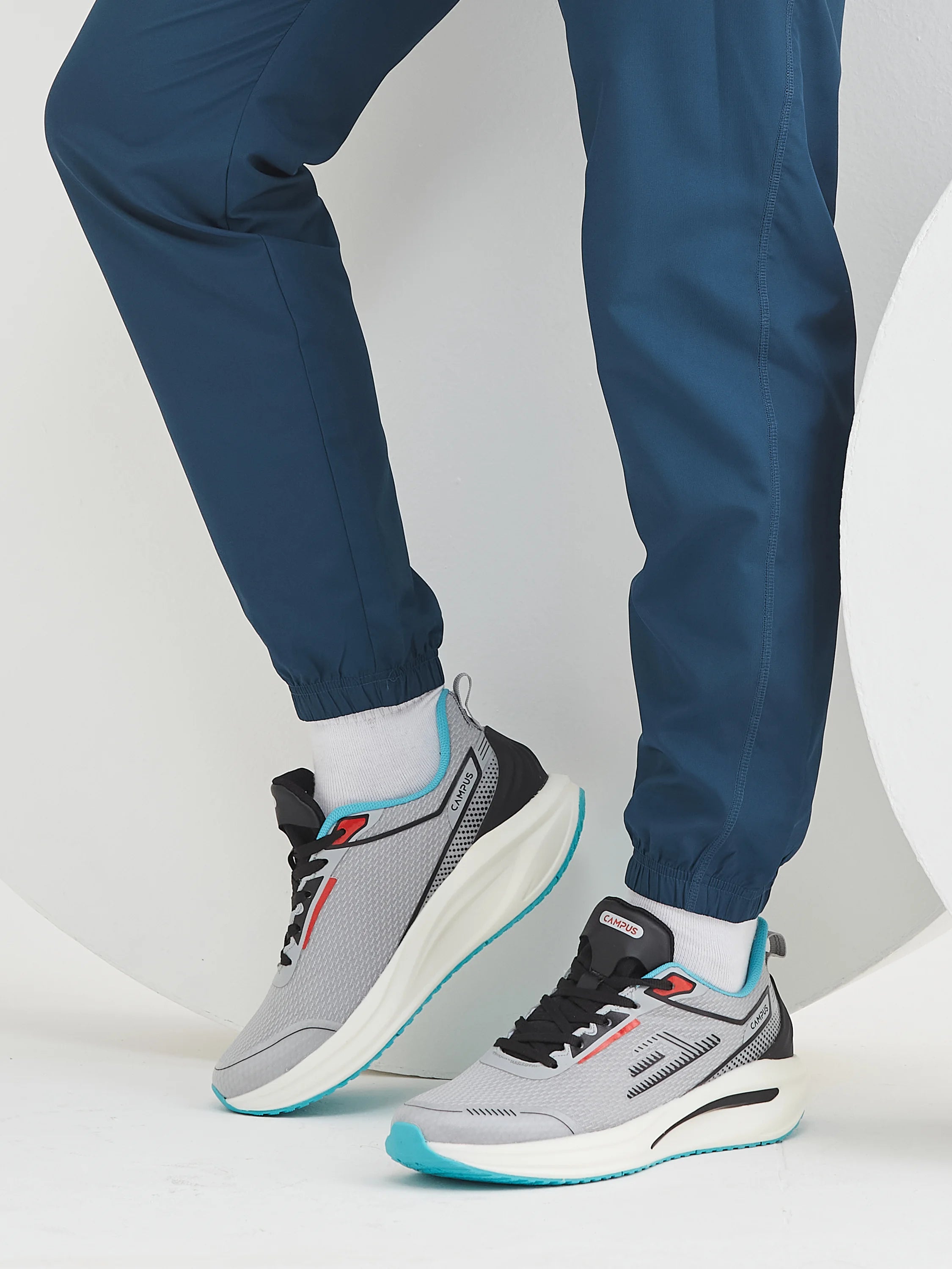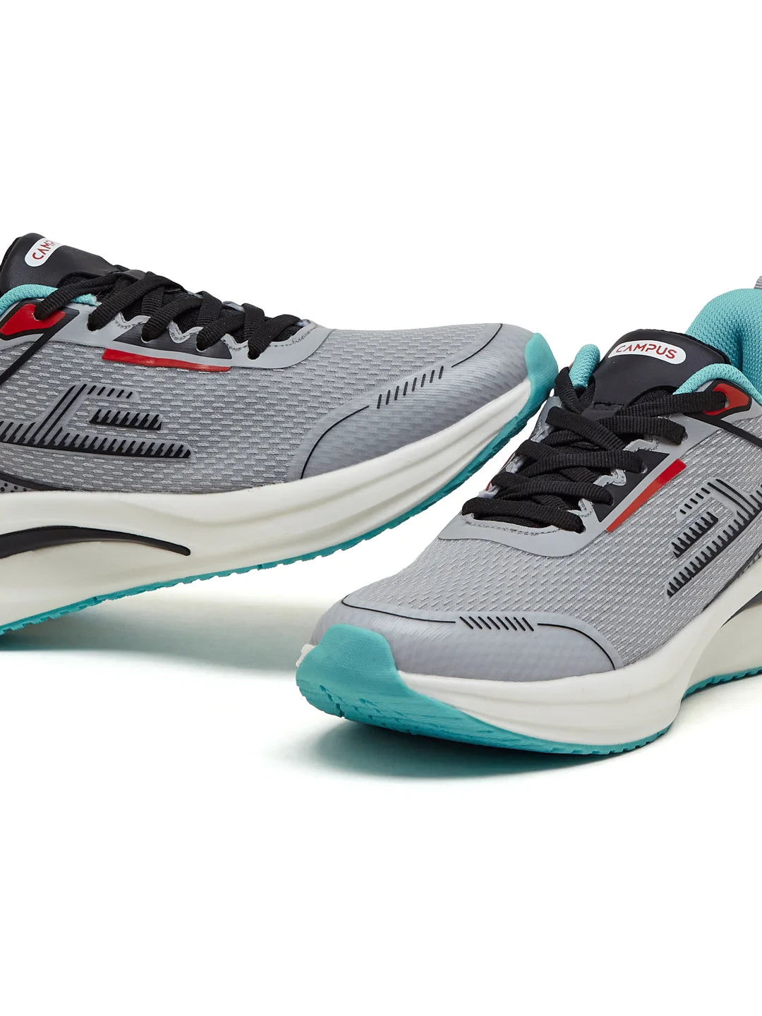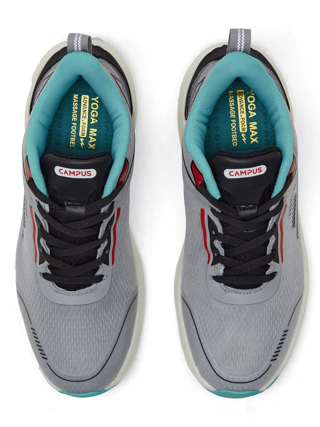 Campus STRUT Men's Running Shoes combine style and comfort for everyday wear. Featuring Nitrofly technology, these make sure your steps are ultra-lightweight, and the anti-slip sole design ensures stability and traction. The non-sew mesh upper offers excellent breathability, while the EVA outsole and Bubble Yoga Max insole provide durability and plush comfort. With a sleek light grey and black design accented by vibrant red details, these shoes are perfect for casual outings. Grab your pair now and step into effortless style!