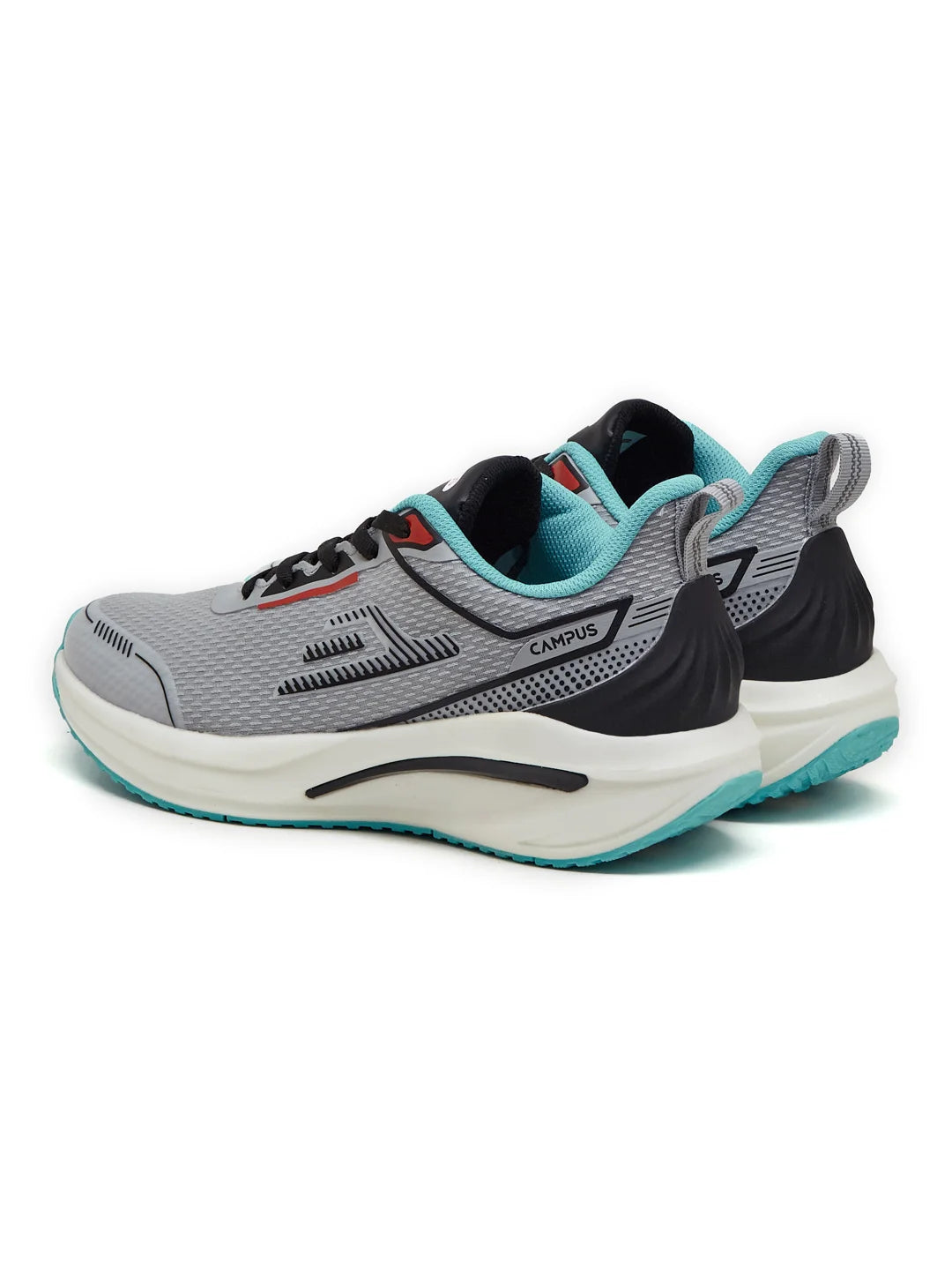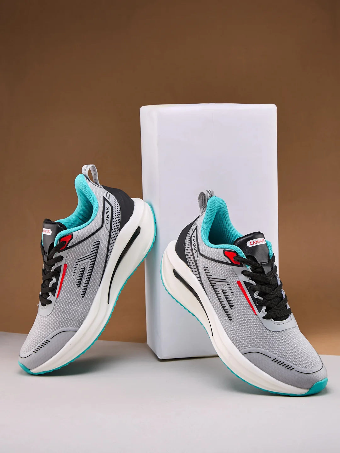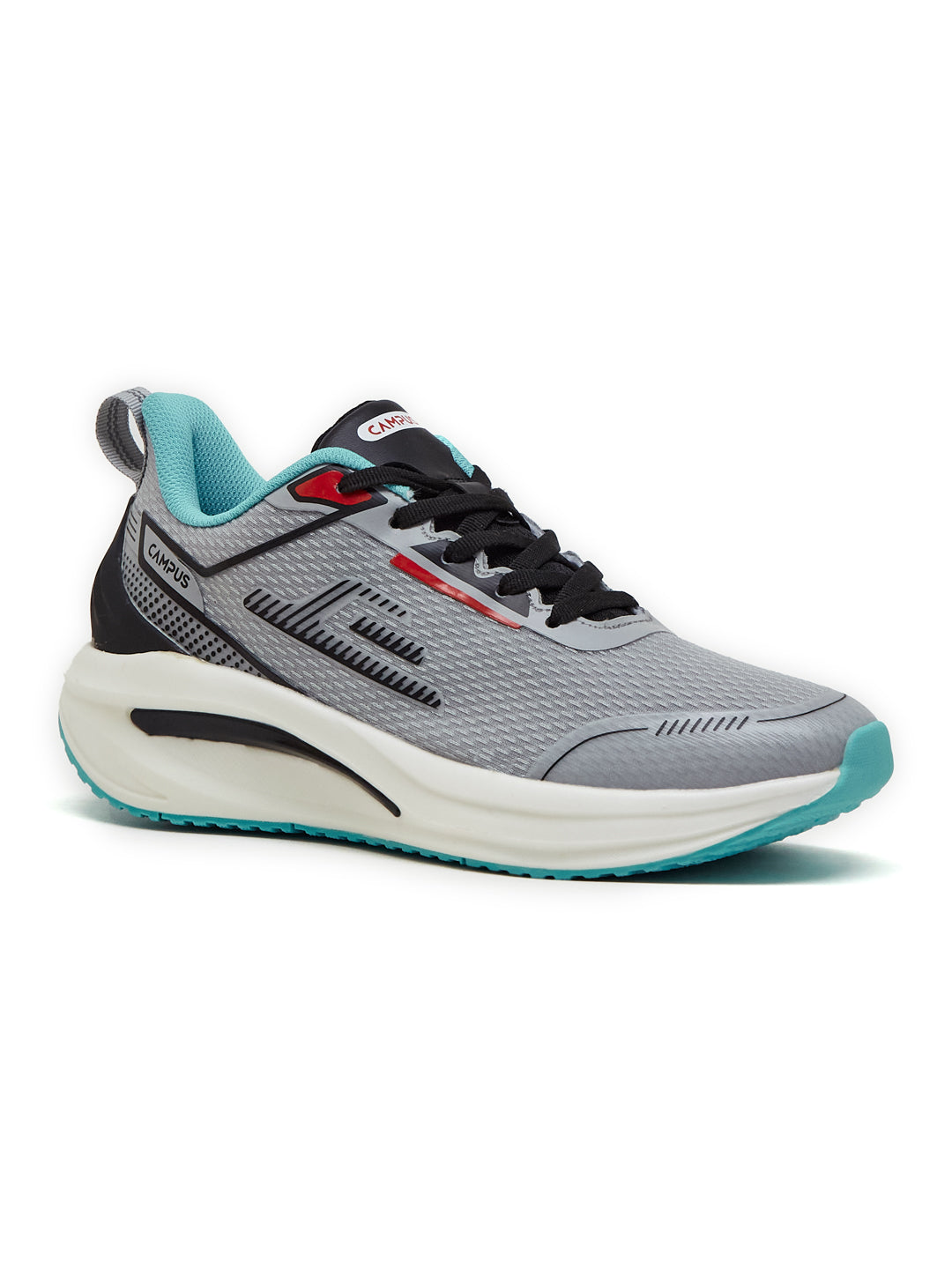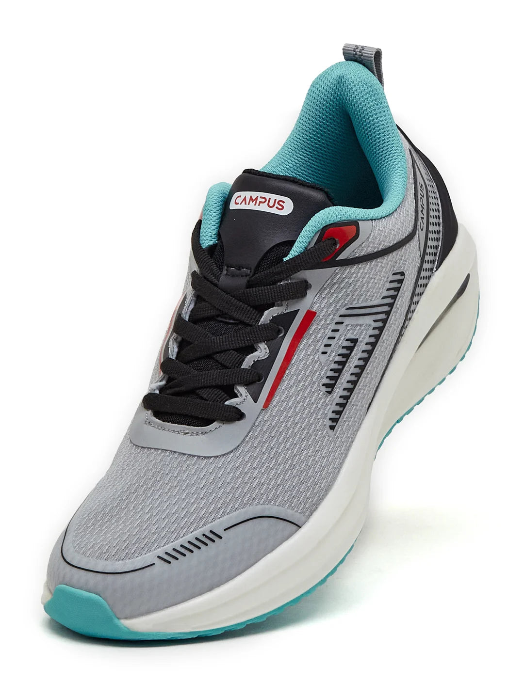 Campus STRUT Men's Running Shoes combine style and comfort for everyday wear. Featuring Nitrofly technology, these make sure your steps are ultra-lightweight, and the anti-slip sole design ensures stability and traction. The non-sew mesh upper offers excellent breathability, while the EVA outsole and Bubble Yoga Max insole provide durability and plush comfort. With a sleek light grey and black design accented by vibrant red details, these shoes are perfect for casual outings. Grab your pair now and step into effortless style!