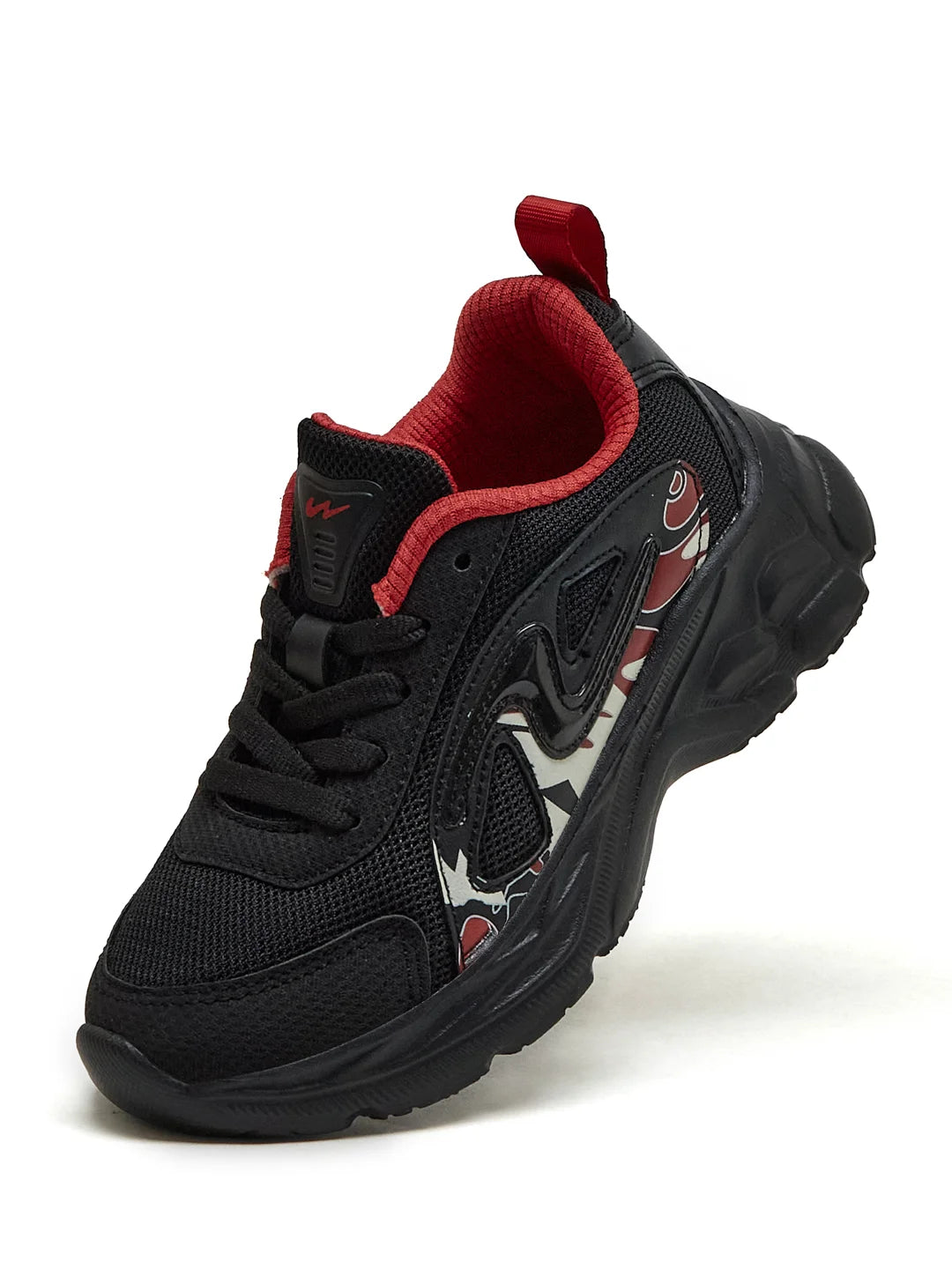 Bring the fun in full swing with the Campus SUNNY-KIDS Sneakers in Black & Red! These chunky kicks are made for kids who love to stand out and move with confidence. The mesh upper keeps the stuffy feeling at bay while the PVC overlays adds texture. The chunky design adds that trendy sneaker vibe to their fits. Underfoot, the EVA sole makes every step light yet comfy, while the adaptive Memory Insole paired with Pillofoam tech wraps their feet in soft, cloud-like comfort. Whether it’s playtime, or birthay parties, outings, this bold black-and-red pair is built for style, energy, and endless fun!