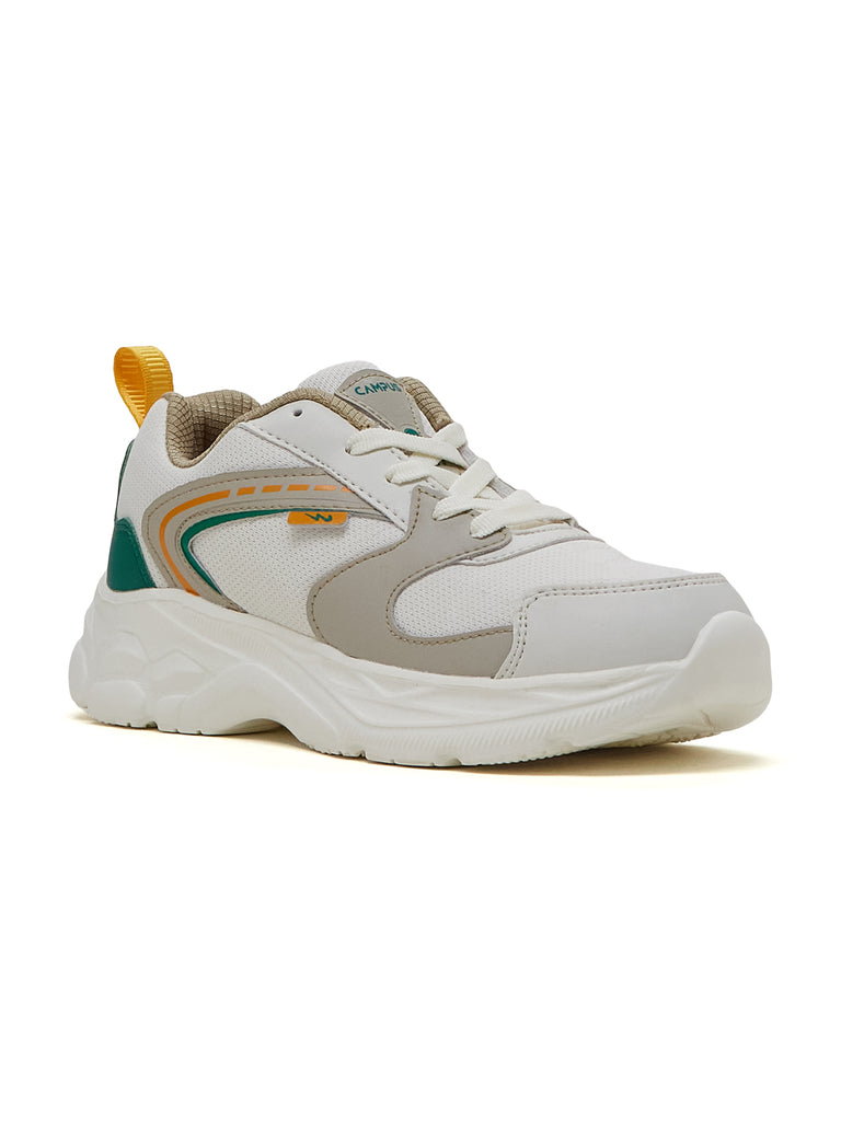 Chunky, comfy, and super cool — the Campus SWAY CH Kids’ Sneakers bring playful energy to everyday. The mesh and PVC upper keeps things breathable yet sturdy, while the full EVA chunky sole adds a trendy lift that’s light on the feet. Inside, the Memory Insole and Pillofoam cushioning team up to deliver all-day comfort to your lil one's feet, through every walk, run, or playtime. With its soft neutral tones, this pair blends perfectly with jeans, shorts, or casual dresses — making it a stylish go-to for every outing!