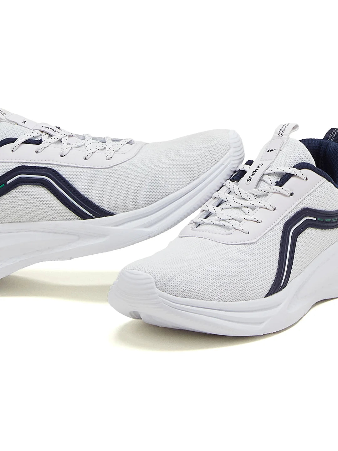 Ace of all, meet the Campus TACT Men’s Running Shoes, built to make every stride smooth and effortless. The breathable mesh upper keeps your feet cool and comfy, while the EVA sole ensures light, flexible steps. Inside, the Memory Insole adapts to your foot’s contours, and Pillofoam cushioning keeps things pillow-soft all-day long. With its clean white base and navy accents, this classic pair just works every. single. time.