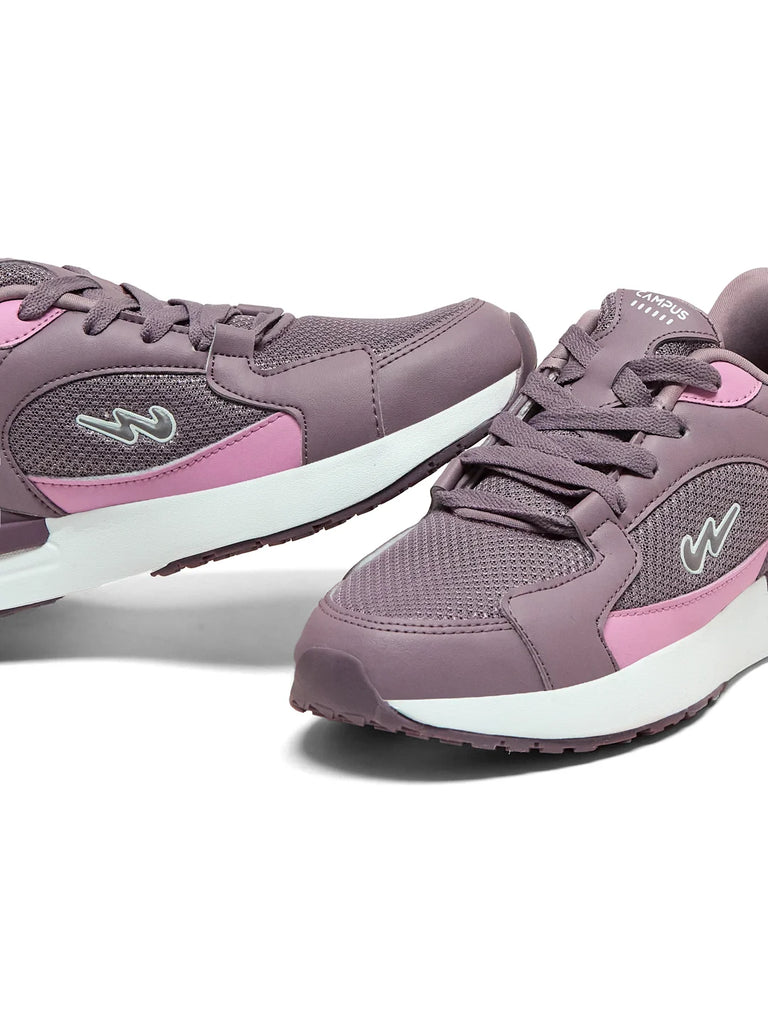 Serve statement in the Campus TEMPT Women's Sneakers in a mauve and pink combo. These lace-ups are built for women who want a playful look that delivers on comfort. The dynamic upper, blending breathable Mesh and sleek PU, gives your feet a cool and cozy fit. Beneath the EVA, TPR, & TPU sole, with anti-slip sole design, ensures reliability and durability. The Memory Insole offers a custom-like feel, while the Support-Tech works towards heel stability and confident footing. Bringing fun and flair to your wardrobe, these are sure to be your new obsession.