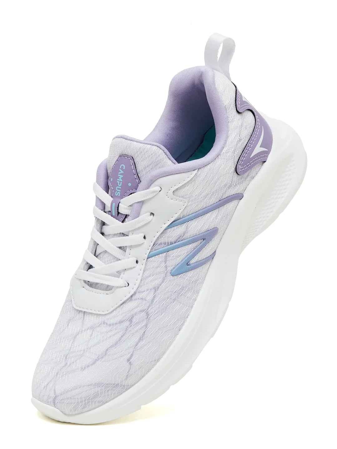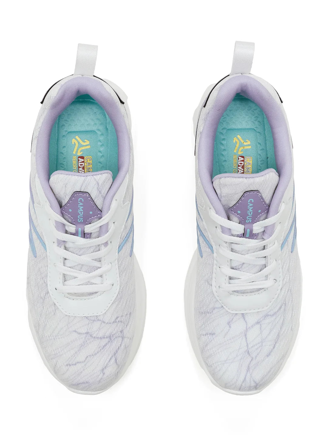 Vibrant, fun, and impossible to ignore — the Campus TERRA Women’s Running Shoes in White & Violet bring a little spark to every step. Fashioned with a distinctive nightglow mesh and PVC upper, this one keeps things airy and structured, with a glow that hits just right. The EVA sole makes each stride feel light and flexible, while Pillofoam and the Memory Insole layer in cloud-soft, adaptive comfort. With its bold violet hues, this pair adds a playful, sporty punch to your look — perfect for days when you want your kicks to show a little personality!