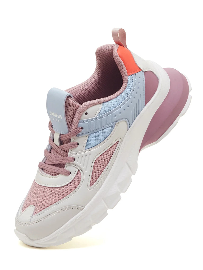 Some parts cute, all parts statement — meet the Campus TRINO Women’s Sneakers. The mesh upper keeps your feet breezy n' airy, while the PVC on top brings that touch of grunge edge. The chunky EVA sole gives you that trendy lift without the weight, so you're always on the go! The super comfort duo: Memory Insole and Pillofoam tech keep every step cushioned, comfy & pillow-soft. With its breezy off-white tones and subtle sky-blue & pink pops, this pair brings a fashion-forward twist to your casual fits.