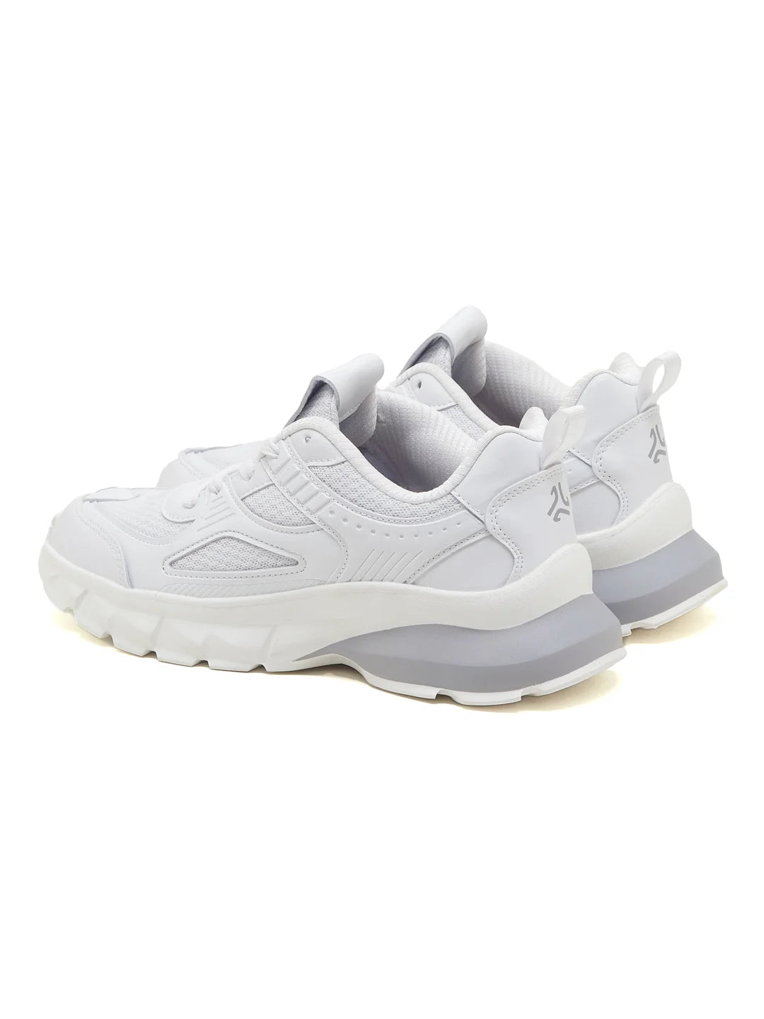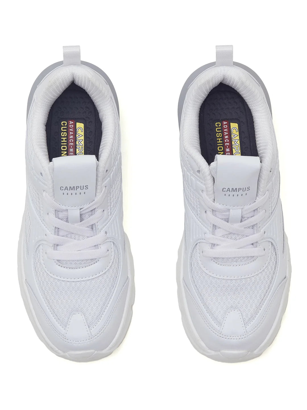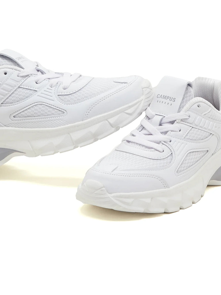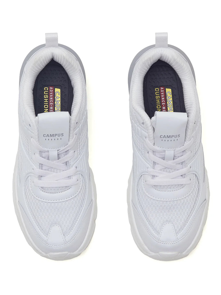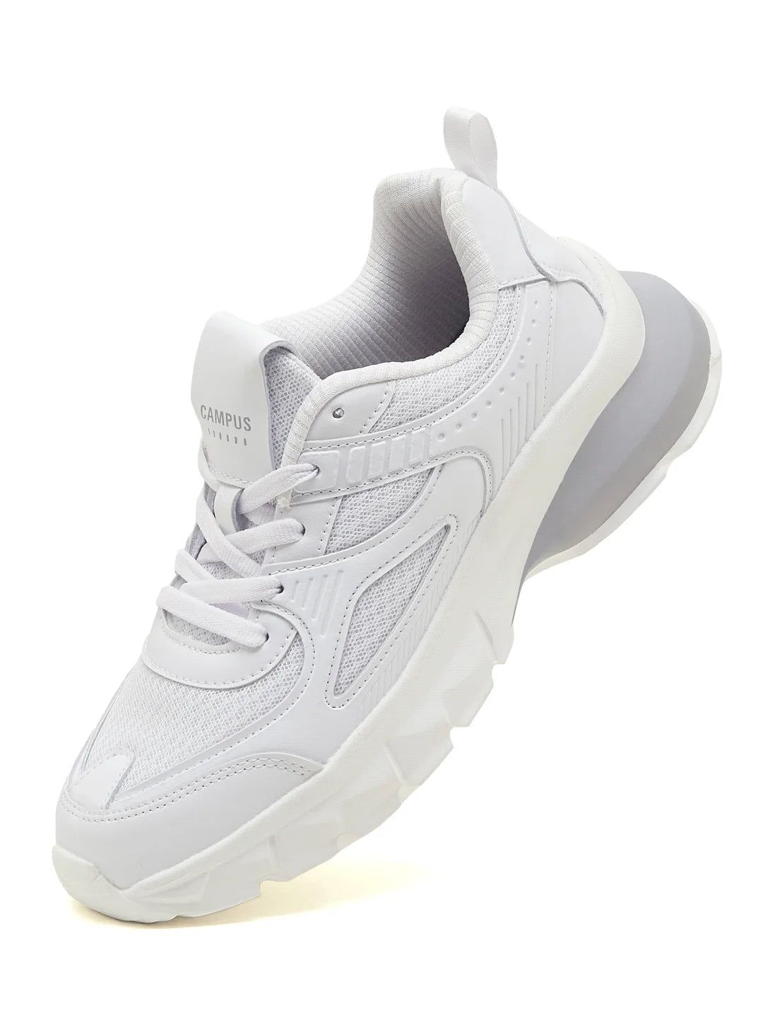 Chunky. Comfy. Cool. The Campus TRINO Women’s Sneakers in White & Light Grey nail that effortless, street-luxe vibe. The mesh & PVC upper brings breathable comfort with a hint of edge, while the white base adds to the versatility. The chunky EVA sole makes every step light, flexible & bold. Inside, the Memory Insole adds adaptive cushioning while the brilliance of Pillofoam keeps your stride pillow-soft all day. The statement design in muted hues makes this pair your go-to for pairing with denim, athleisure, or oversized street fits.