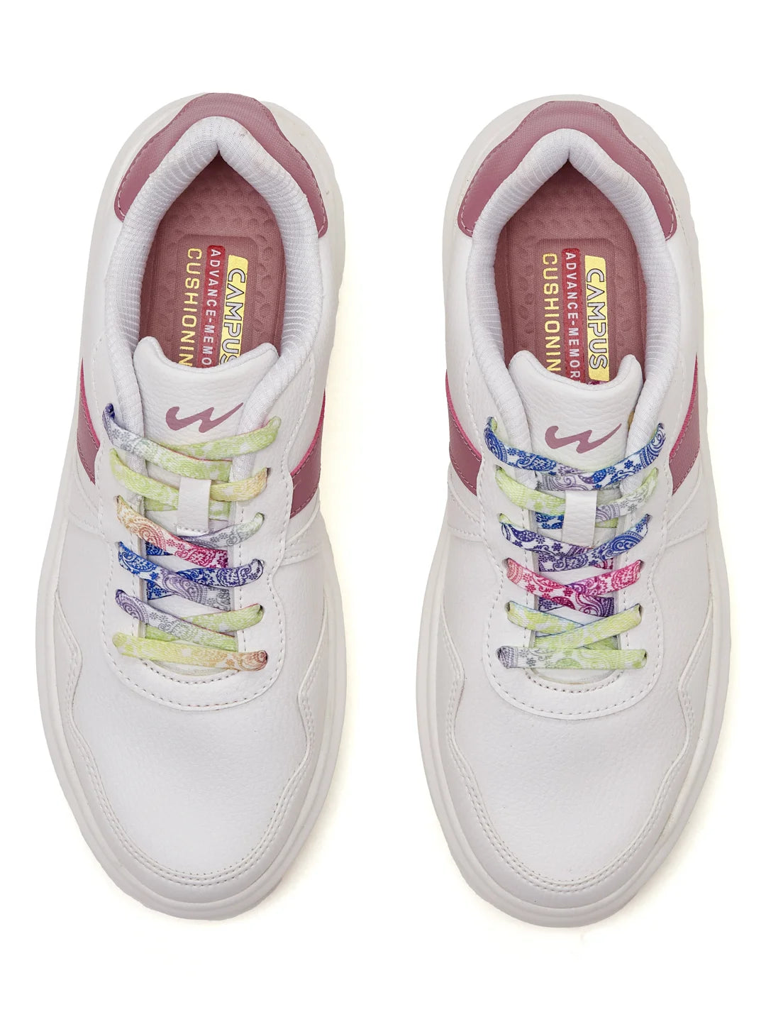 Add a splash of colour and confidence to your everyday look with the Campus VALUT Women’s Sneakers. Designed with a sleek PVC upper and topped with laces in a playful mix of hues, this pair brings that effortless, trendy edge to all your casual fits. The EVA sole keeps every step light and cushioned, while the Memory Foam Insole cradles your feet in lasting comfort. With added PilloFoam tech, you get that pillow-soft bounce. From jeans to dresses — these sneakers are your go-to for easy style and all-day comfort.