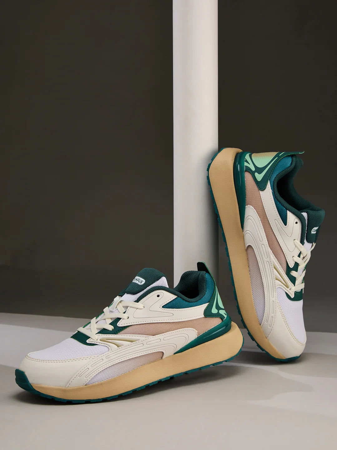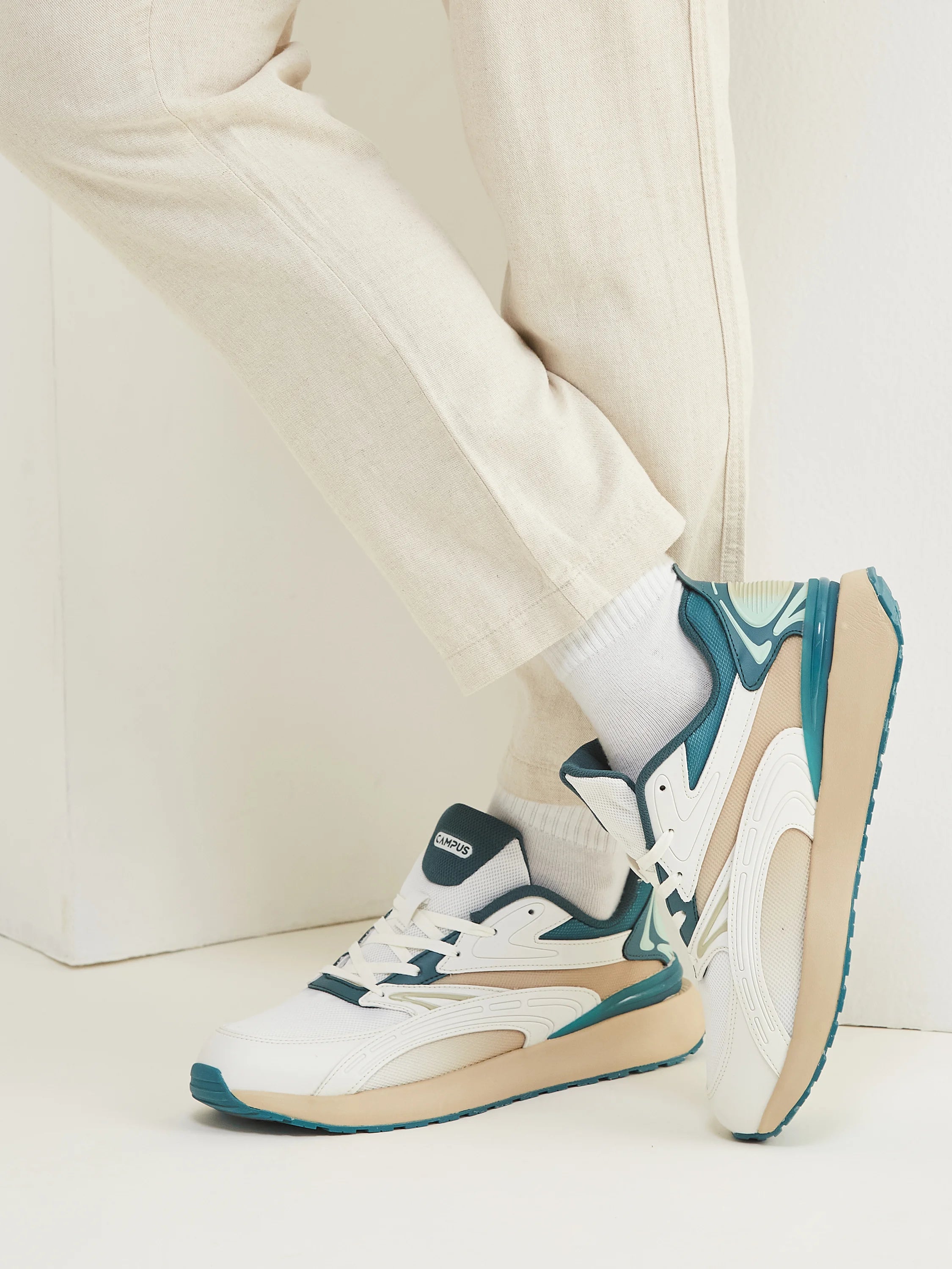 Step up your shoe game with the Campus Vitality sneakers for men-designed to keep you moving in style. The mesh upper lets your feet breathe, ensuring all-day comfort no matter where your day takes you. Walking on the Bubble Yoga Max Insole is like stepping onto a yoga mat. The Anti-Skid Outsole has got you covered, offering the perfect traction and grip to keep you steady and confident. Plus, the chic combination of off-white and dark green adds a dash of sophistication, making these sneakers the ultimate choice for men who value both style and comfort.