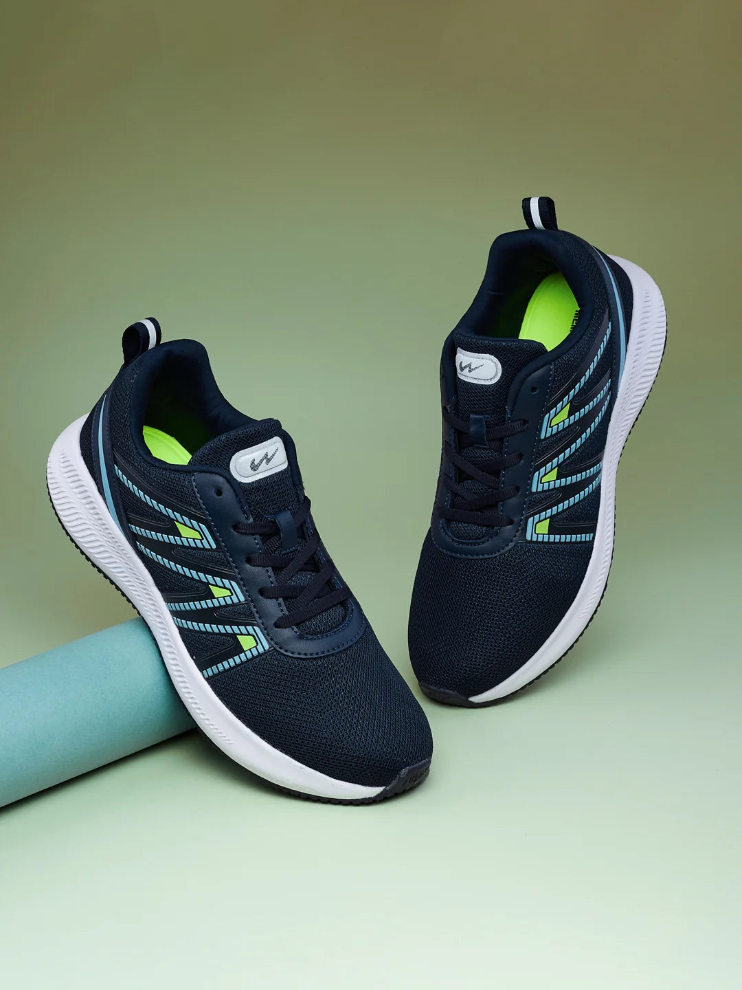 Step into the wild with the Wendigo Men's Running Shoes from Campus. These stylish shoes feature a breathable mesh upper, ensuring your feet stay cool and fresh all day. The secure lace-up closure provides a snug fit, while the Memory Insole offers custom cushioning for unparalleled comfort. The Anti-Slip Outsole delivers exceptional grip and traction, perfect for work, workouts, and everything in between. The Wendigo shoes boast a cool color combination of navy blue, neon green, and sky blue; making them as eye-catching as they are functional.